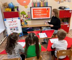 8 декабря в подготовительной к школе группе «Звездочки» прошло занятие «Разговоры о важном», на тему: "Россия — страна победителей", приуроченной ко Дню Героев Отечества